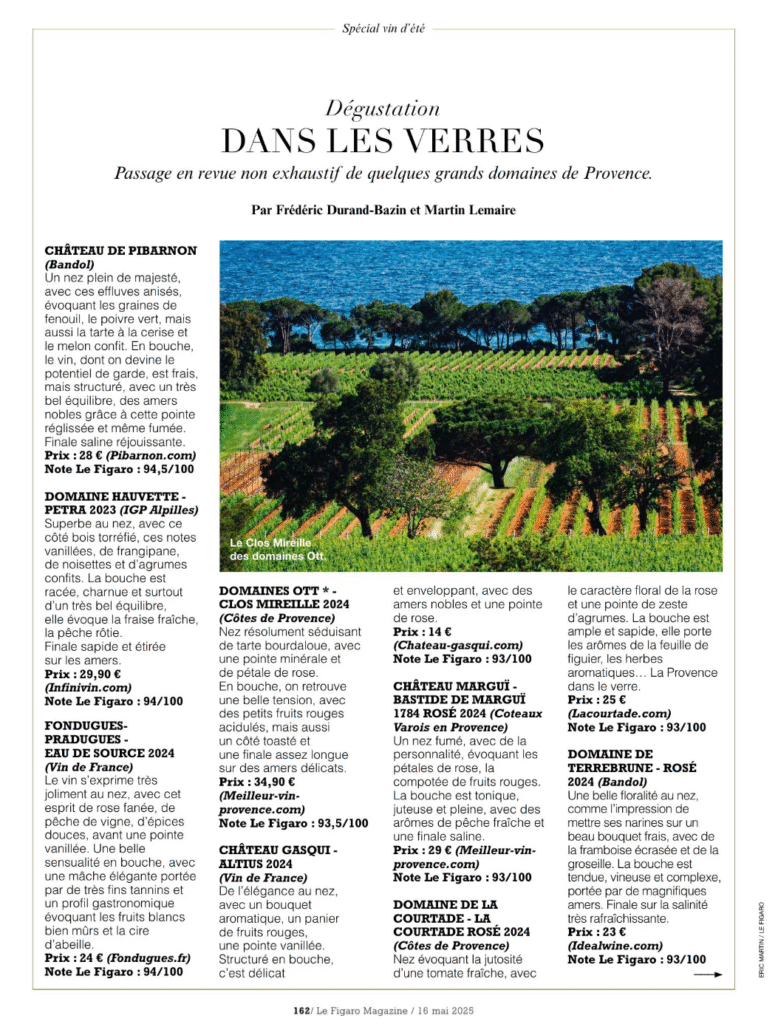 En 1930, le clos Mireille situé en bordure de Méditerranée vient enrichir son patrimoine viticole blanc, suivra pour les rouges, le château de Romassan à Bandol en 1956. Trois identités viticoles – propriété de Roederer Collection, le groupe de Frédéric Rouzaud –, que la famille continue de sublimer. L’exemple des Ott mais aussi des familles Matton et Fayard illustre cet attrait inaltérable maintenu sur plusieurs générations pour le territoire provençal. Une terre où se déploient d’innombrables aventures vigneronnes. Chacune singulière. Entre des individus passionnés qui, d’hier à aujourd’hui, craquent littéralement pour ce coin de France que le monde entier leur envie.
